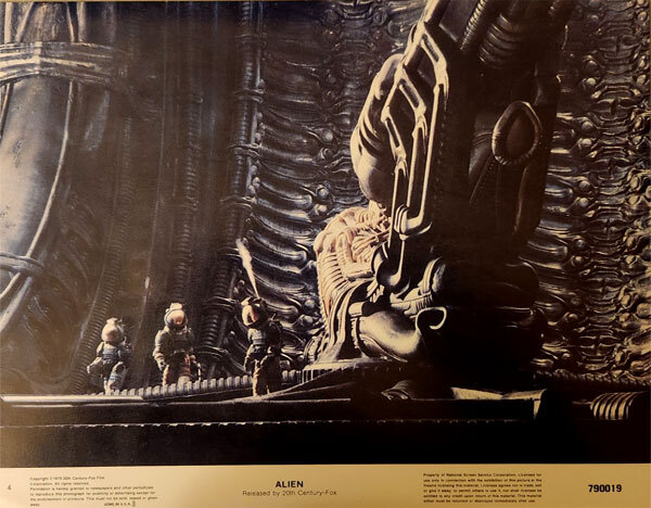 An 11x14 inch original theater lobby card for ALIEN (1979). Features explorers on the alien planet with creepy architecture and other-worldly biological machinery. Creepy scene! In "like new" excellent condition. Original release theater lobby card.