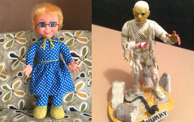 My sister had dolls. I didn't take too much notice of them, other than a Mrs. Beasley doll (popularized by the TV show FAMILY AFFAIR). She stood out among dolls with that fake hair and granny glasses. That fake hair reminded me that my sister also had some kind of doll that grew its hair, pulling out of its scalp. That was weird. I wonder how the hair retracted? But those dolls seemed to correspond with the models I loved. I would build all those Aurora monster models. Then, rebuild them again as the glow-in-the-dark versions came out in the square boxes. My sister may have had Mrs. Beasley, but I had a real mummy with out-reached arm, walking among the Egyptian rubble with dripping blood that I had carefully painted on.