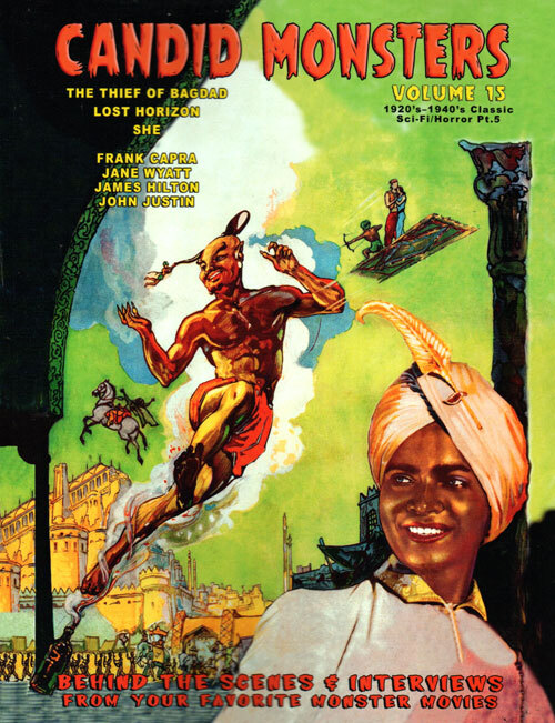 The magazine that's more like a book...perfect bound 140 pages! Behind-the-scenes and interviews from your favorite monster movies. In this jammed issue: THE THIEF OF BAGDAD, LOST HORIZON and SHE. Spectacular fantasy films. Inside: Frank Capra, Jane Wyatt, James Hilton and more. Super rare photos!