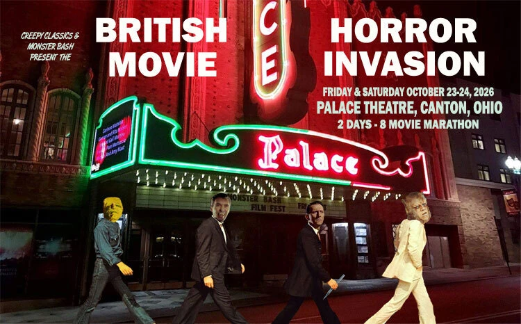 This autumn's MONSTER BASH FILM FESTIVAL at the majestic Palace Theatre in Canton, Ohio....is October 23-24, 2026! We'll be the week BEFORE Halloween in 2026 with the creepy coolest British classic horror films. The change from August to October for the Monster Bash is due to renovations that will be happening at The Palace in August-September 2026.