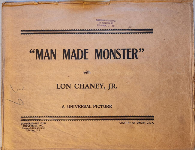 This is the original envelope that MAN MADE MONSTER lobby cards were issued in to theaters back in 1941. There can't be many of these that survived, this may be the only one still in existence. Most theaters would have taken the lobby cards out and thrown this away. If you are a lobby card collector and have a MAN MADE MONSTER lobby card, you probably would love to add this to your collection. A super, super rarity for Universal Monster collectors, lobby card collectors, Lon Chaney, Jr. collectors. A little bigger than 11x14 inches. Original envelope!