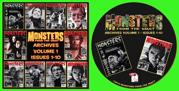 Can't find the early issues of MONSTERS FROM THE VAULT mag? Here's a CD of digital files on those first ten issues...only a few copies of this left, get yours: