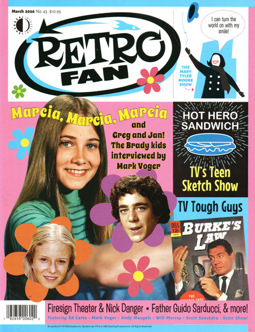 The magazine that launches you back to the 1960s-1980s! Pop culture that we remember. All-glossy with articles on THE BRADY BUNCH with Marcia, Greg, and Jan interviewed! Plus, THE MARY TYLER MOORE SHOW and other Mary projects! Plus, a look into the classic and obscure horror TV show...WAY OUT! And, read about BURKE'S LAW, super-heroes, and retro kid's games.