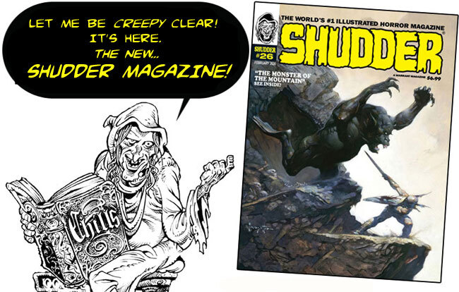 Don't miss out and get behind...This is hot off the slab. See it and all the back issues in our SHUDDER Department at Creepy Classics.