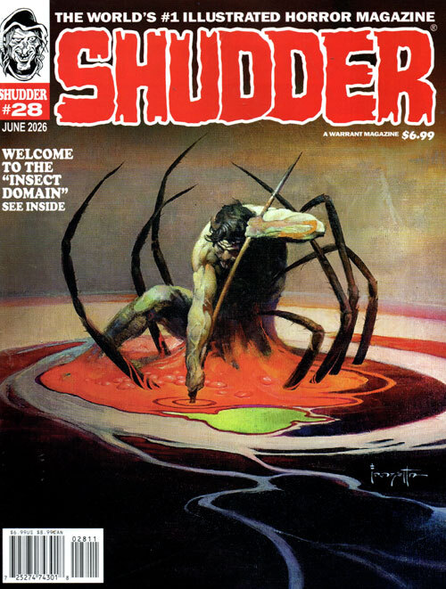 The world's #1 illustrated horror magazine! This is the creepy cool magazine just like the ones we grew up with. Fun and ghastly stories in black and white comic form. Inside the Shudder vault in this issue: The Insect Domain, Cathedral t Stonehenge, Premature Burial, Stake-Out, and more. Writers in this mag include Don Glut, Nicola Cuti, Artie Godwin, and others prepared to chill you. Cover by the horror and fantasy art legend, Frank Frazetta!